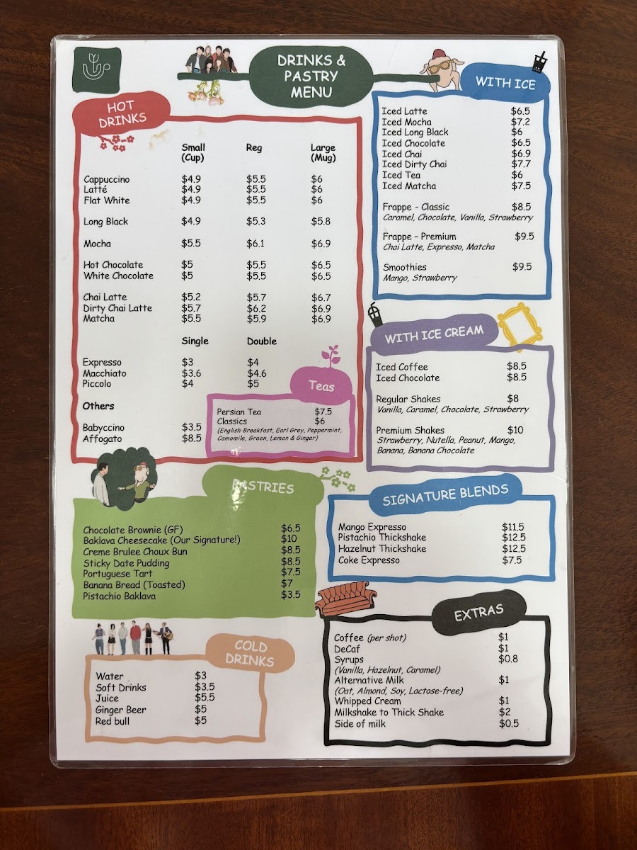 The cafe's interior, adorned with nostalgic "Friends" themes, enhances your dining experience, making it perfect for cherishing moments with loved ones. Escape to this gem, where great food and friendly service await!